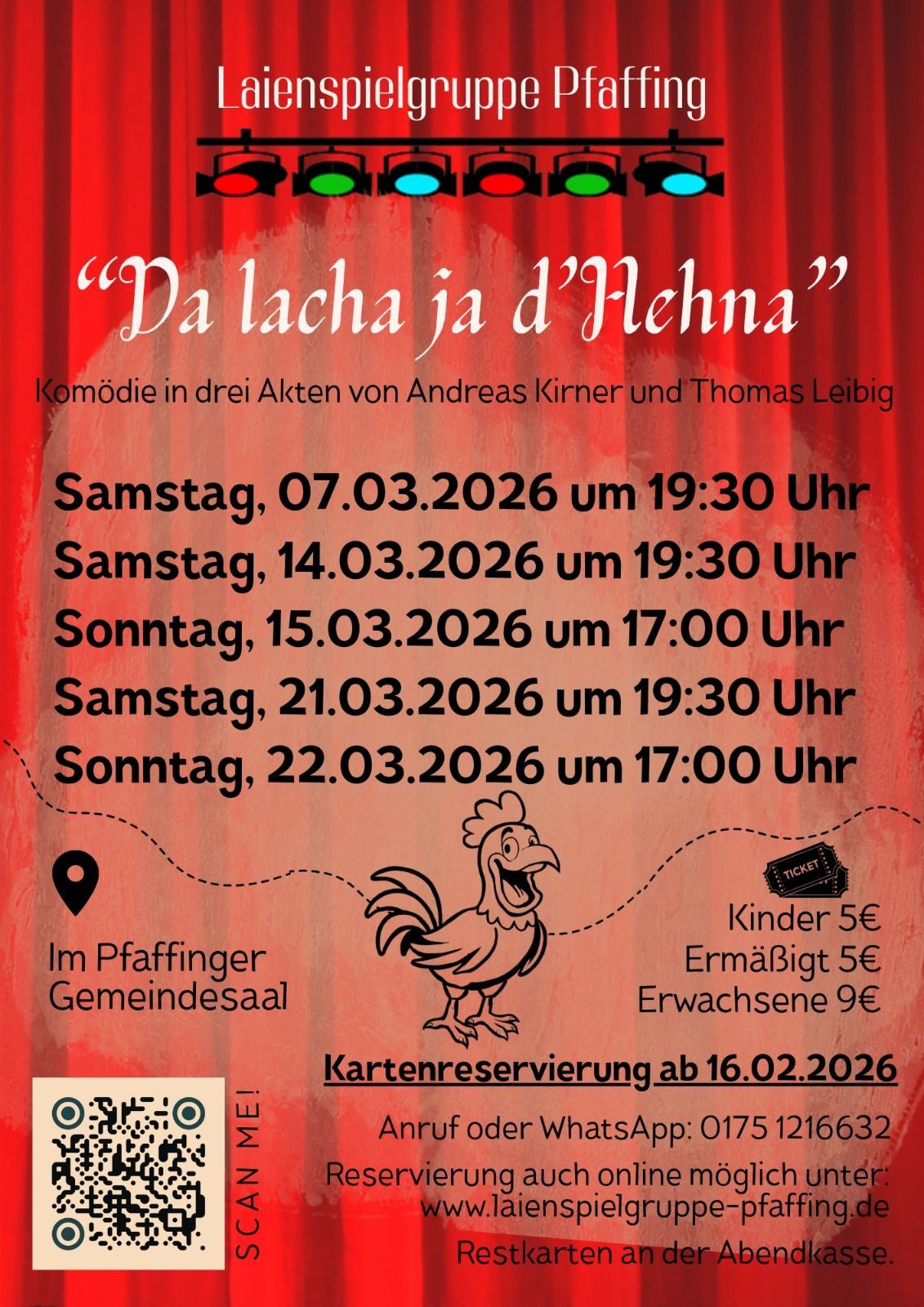 Die Proben für unser neues Stück „Da lacha ja d' Hehna“ sind bereits in vollem Gange – mit viel Spielfreude, Humor und Engagement wird fleißig geprobt, gelacht und an jeder einzelnen Szene gefeilt.
